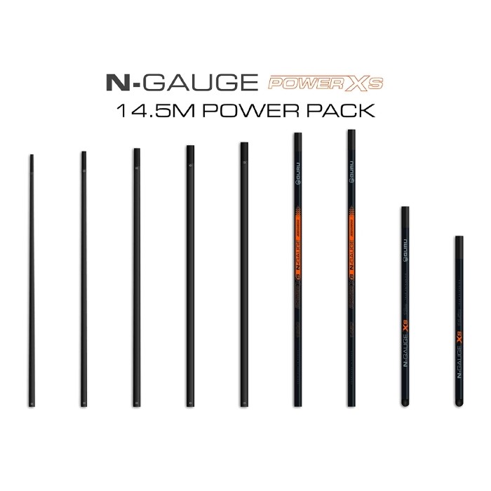 The Guru N-Gauge Power XS Zero 500 Pole 14.5m Power Pack has been designed to cope with heavy duty fishing, big fish and the most demanding of fishing situations. Strength, power and performance are the key assets of the 14.5m. Equally at home fishing in the margins or short for big carp with plenty of power in the smaller sections, or at longer lengths on snaggy swims, even shallow or against features, the Guru XS Power Pole can handle everything UK and European commercial fishing can throw at it! It nots just suitable for commercials, but also if you’re a natural venue angler that’s looking for a solid piece of kit for windy conditions or demanding fishing such as flat floats on a river or heavy handed work on a challenging venue then the Guru N-Gauge Power XS Pole is perfect for the job!