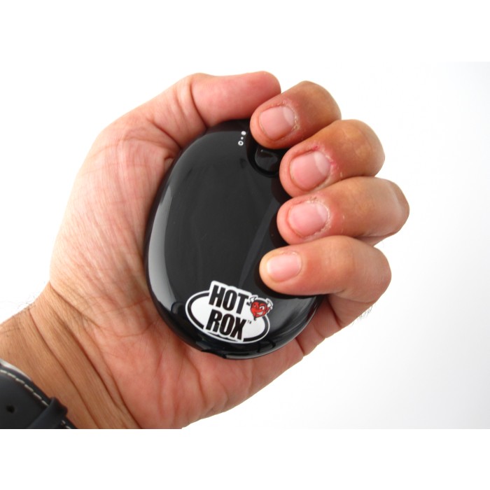 Smooth Tactile Finish. HotRox hand warmers are made to be held. The sleek tactile design measures just 19mm thin. Simply turn HotRox on and grasp it lightly with the hand to allow the heat to transfer and warm up your hand. Once your hand is warm you can transfer the HotRox handwarmer to the other hand and enjoy the warmth. Of course theres nothing stopping you using two HotRox handwarmers at the same time!