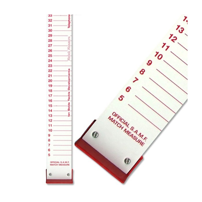 The Ian Golds match measure is a white plastic fish measure, its 45cm long and is designed for measuring your catch. Designed for match anglers who need to measure there fish in a match situation, or for pleasure anglers who need to measure there catch to see if it is sizeable for the table. The measure is S.A.M.F approved and is in single CM increments.