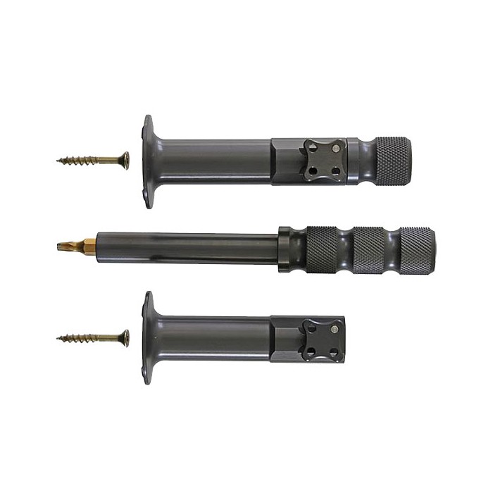 Precision machined in England from high grade aluminium, with a unique super-hard anodised non-glare grey finish. Extremely lightweight and durable. No screwdriver required, place supplied driver bit into the lower section and use to fix the supplied screw. Adjustable system, short banksticks are not needed although any JAG bankstick can be fitted to give extra height. Pack of 2 - front and back.