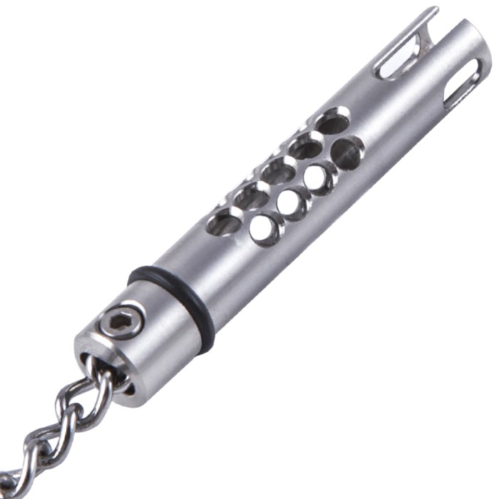 The new curb chain replaces the original cord, the package includes a hexagon key in the end for the thread connector, so if you wish to fish the MK2 as a drop off indicator you are able shorten the chain so the top of the Safe Liner sits just below the roller.