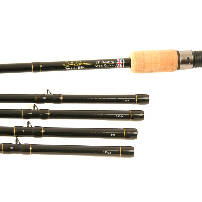 John Wilson has been designing rods for more than 25 years and uses this wealth of experience to its full potential to produce the highest quality and most exciting rods to use down on the bank. To celebrate 25 years of the world-renowned avon quiver and its excellence, John Wilson has released the special edition 12’ Quattro Avon Quiver. With a huge range of angling books, DVDs, and television shows to his name, you can be confident that the construction of this rod is packed full to the brim with the knowledge this experienced fisherman has accumulated over the years.