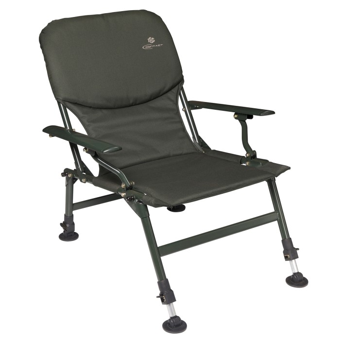 JRC Contact Chair With Arms, Robust hi-tensile steel frame, comfortable aluminium arm rests, swivel and fold flat mud feet, durable 100% 600D polyester cover filled with high density foam, fully adjustable legs, starter range that offers unmatched value for money!
