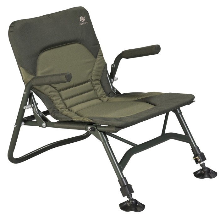 Super light weight and compact stealth design, 6061 Aerospace grade aluminium frame, clever rear leg design for easy adapting uneven surfaces, arm rests with Japanese EVA covers for improved comfort, ergonomic designed extra thick padded 600D polyester cover, fully adjustable front legs with oversized swivel and fold mud feet, the perfect chair for stalking carp anglers.