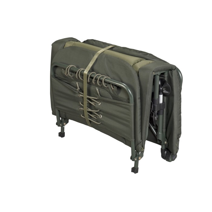 Ultra strong but feather light 6061 Aerospace grade aluminium frame, unique patented 4-Folding System (4F-System), super compact transport dimensions, multi point recliner system, 600D Polyester cover filled with high density foam, fully adjustable legs, oversized swivel and fold mud feet, comfortable removable head pillow for a good night sleep, including FREE 400D polyester carrybag!