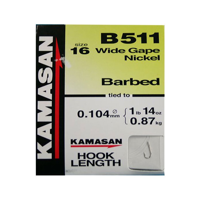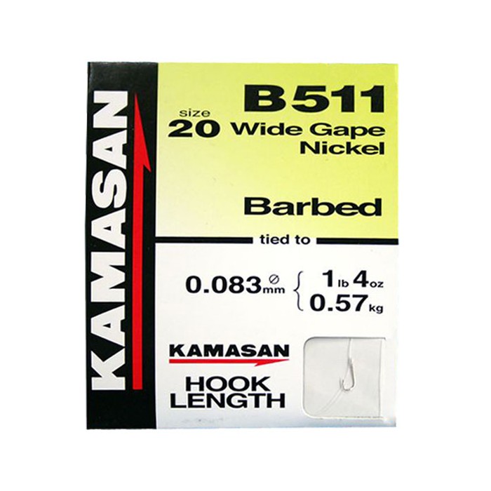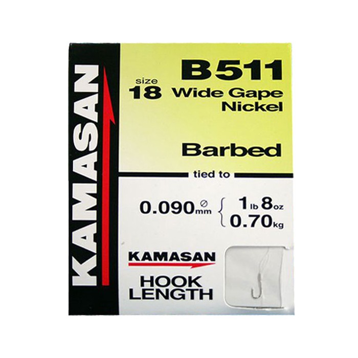 The ever popular spade end Kamasan B511 is a super high carbon fine wire hook with medium length shank and a wide gape.