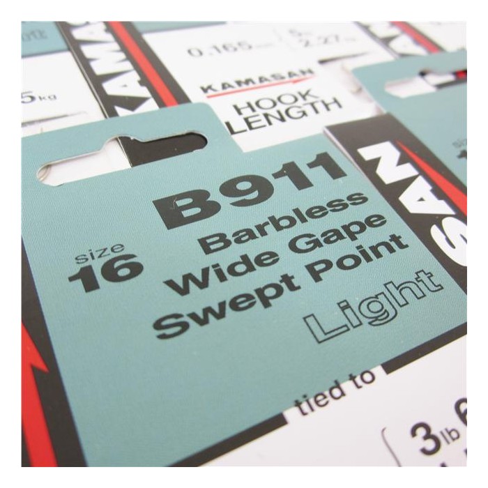 The barbless B911 design with its wide gape and long swept point is the ideal hook for landing hard fighting fish from stillwater venues.