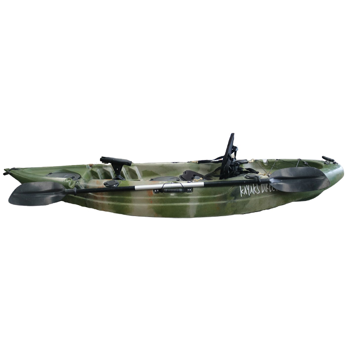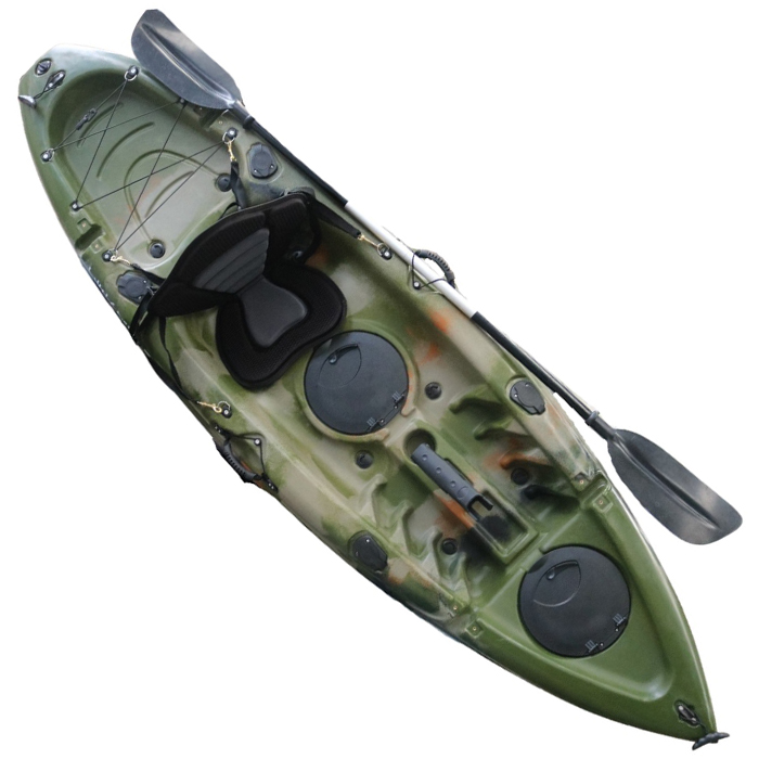 Looking for a great kayak for fishing? Look no further than the Kayaks Direct Fishing Kayak Camo! This kayak is perfect for anglers of all levels, with features like a padded seat with straps and metal clips, a lightweight double-ended paddle, adjustable fishing rod holders, and 4 inbuilt flush fishing rod holders. There are also 2 waterproof storage hatches on board, perfect for keeping your gear dry, as well as 8 drainage bungs to prevent water from entering the kayak. Plus, there's a black bungee / rear storage area for even more storage space.