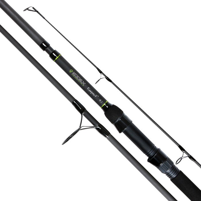 Team Kodex have created a unique design with the Kompact CN rod, which allows you to fish at 9ft (2.7m) for stalking or resting on a buzz bar, then easily add on the 1ft extension when you cast, to add that extra leverage for distance work. It collapses down to a compact 42" length (the same length as 42" speci nets), for convenient storage and transportation. It is a full-carbon build (3pc + extension), with all the strength of conventional 12ft carp rods; in fact, you'll struggle to believe the strength of this little beauty! Top-class features are incorporated throughout including a screw-up reel seat, black chrome legged guides, carbon line-clip, soft-touch slim handle, and 40mm butt ring. It also comes complete with a special set of Kodex rod wraps.