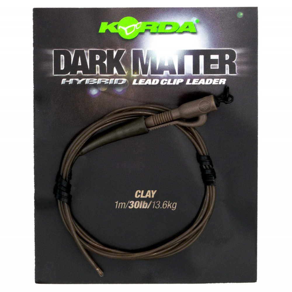 The Korda Korda Dark Matter Fishing Leader Hybrid Lead Clip has been fused with plastic leaders that have been tinted to precisely match the lake bed.