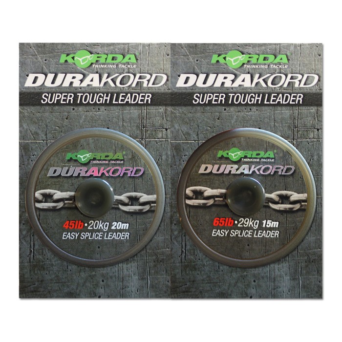 Korda Durakord has been designed as the extreme snag leader. Easily spliced, Kamo in colour & manufactured with an increased diameter to prevent "cutting" into submerged branches often found in wild venues. A special mix of fibres that includes Ultra High Performance PE gives it high strength & incredible abrasion resistance.