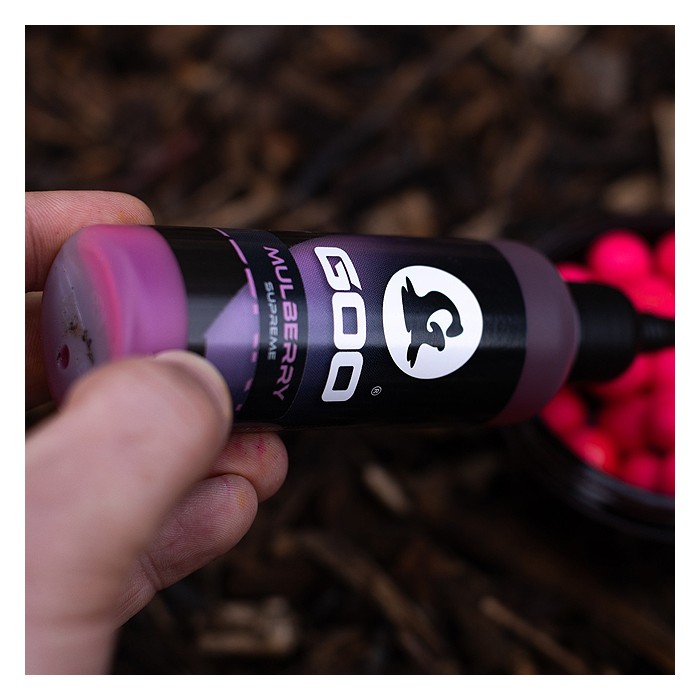 Mulberry Supreme Goo is a rich and satisfying purple colour that mirrors the fruit on which the flavour is based. It creates a subtle mauve hue in the water and will change your hookbait colour when it soaks in, getting more intense the more it is left to soak. Being a ‘Supreme’ variant, it has a thinner consistency that allows it to soak into the core of your bait whether it is hook baits such as Wafters and Pop Ups and/or cover your loose feed such as Pellets and Particles perfectly.