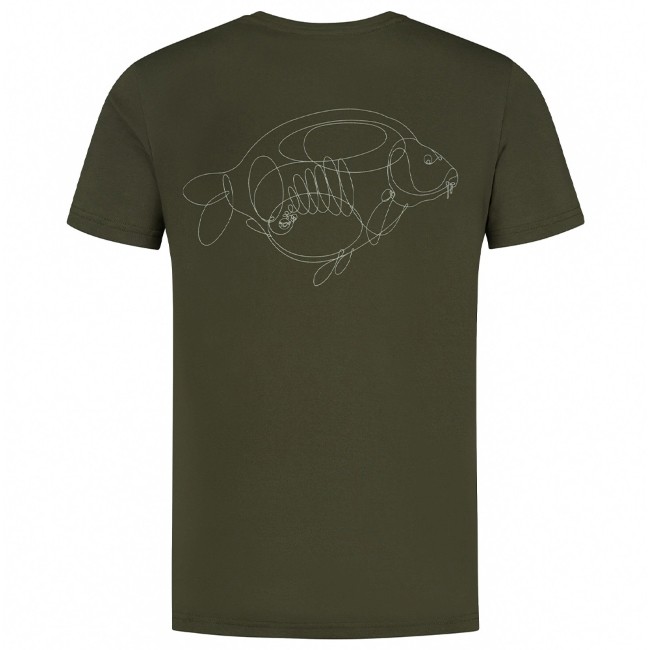 This tee gets its name from the distinctive graphic on the back of the shirt. The image of a carp was drawn using one continuous line, producing an eye-catching image of a mirror carp.