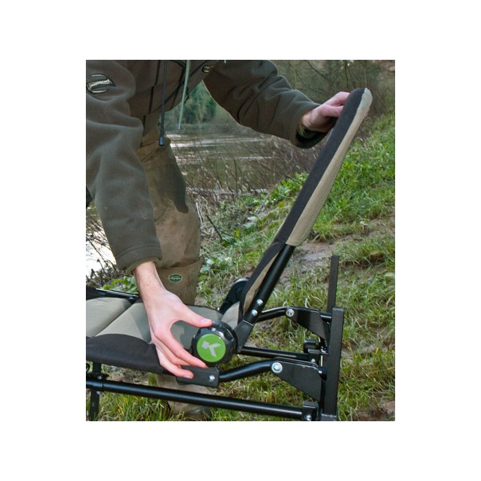 Not only the Korum Accessory Chair practical but also incredibly comfortable. Fully padded, this back of this chair can also be angled to create your optimum seating position. No longer do you have to suffer from back pain on the bank from an uncomfortable chair. The chair is finished in a stylish green and black.