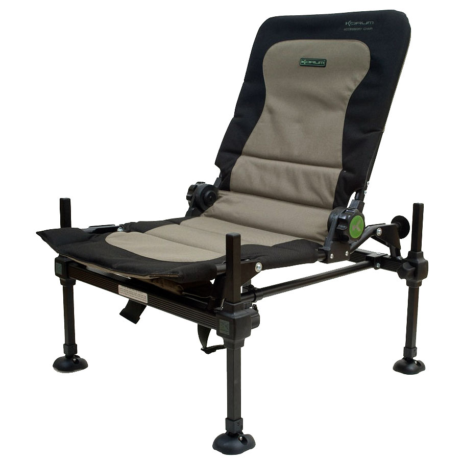 The Korum Accessory Chair is a must have for the angler who like to have all their key equipment close to hand. This Korum chair is compatible with countless combinations of accessories – simply clamp on your side tray, cool bag, or your accessory of choice, and you’re good to go!