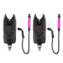 The Korum KBI-R 2 Rod Alarm Presentation Set includes two remote alarms and a wireless bite alarm receiver, as well as two bright purple bite indicators.