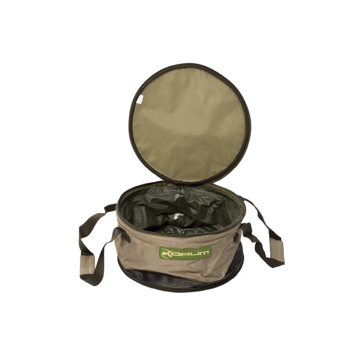 Storing and transporting bait is one of the biggest problems faced by anglers – particularly anglers who like to be mobile and move between swims on a long session. Many bait buckets and bowls are often cumbersome – manufactured from sturdy plastic which takes up lots of room whether empty or full. This Groundbait Bowl from Korum takes all the benefits of a sturdy bucket and makes it mobile. Manufactured from sturdy fabric, this Groundbait Bowl can be completely collapsed when empty, making the storage of the bowl exceptionally easy in the time spent off swims.