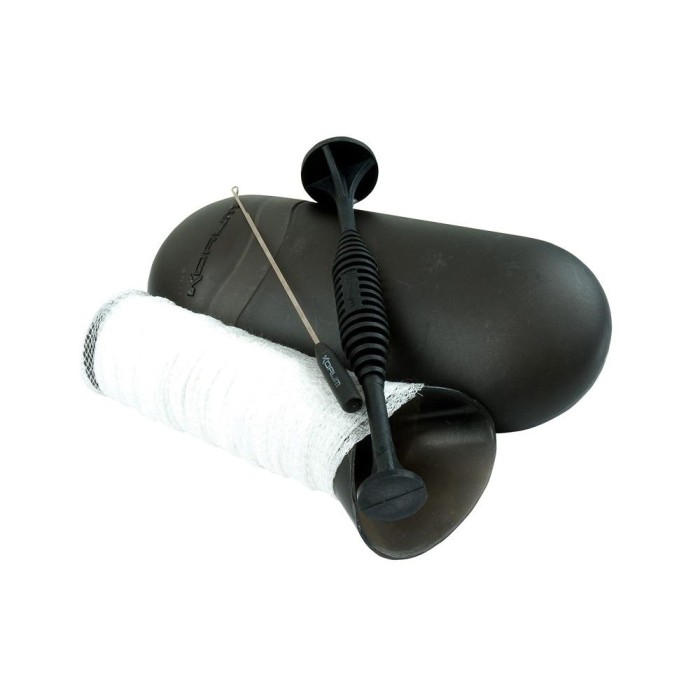 The Korum PVA System contains all you need for fast, easy construction of mesh PVA bags. The low residue, fast melt, anti-ladder micromesh PVA is of the highest quality. The unique scoop, funnel-shaped tube, allows for easy and accurate filling with pellets or groundbait when making bags and groundbait sticks. The shaped lower end of the tube limits the PVA spilling off the tube during filling.
