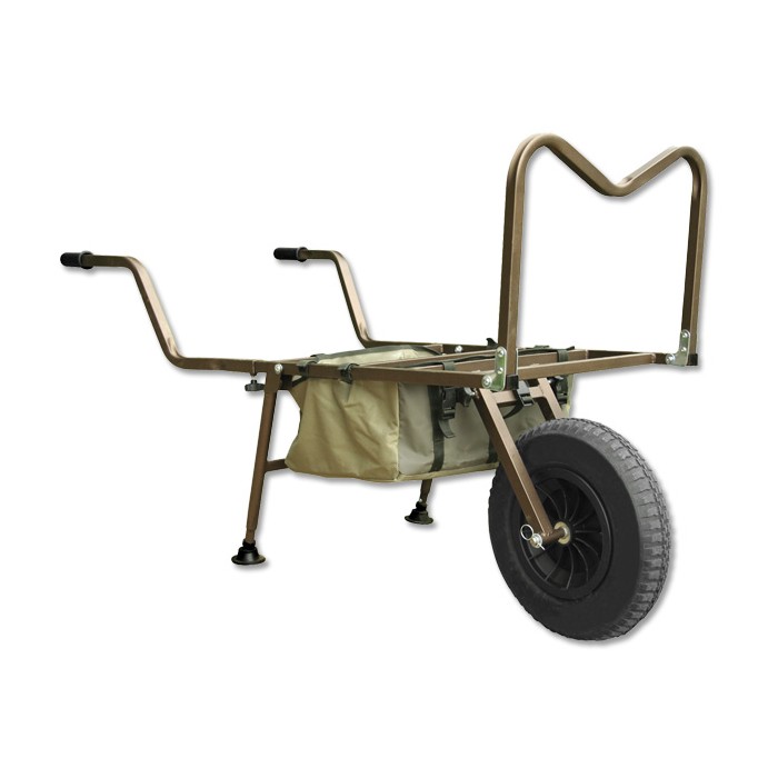 Korum Single Wheel Barrow is a clever barrow that despite its huge carrying capacity can be dismantled easily and stored in the back of the car. Where the Korum Single Wheel Barrow really scores though is when combined with the Korum Accessory Chair and Ruckbag. Korum Chairs fit perfectly on the back of the chassis without the need to fold the legs extending the deck area significantly. The front of the Korum Barrow deck has been designed to perfectly fit the Ruckbag, giving access to all the pockets and main compartment without the need to unload your barrow.