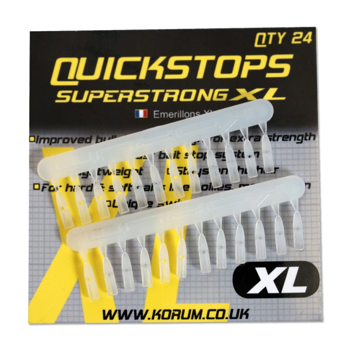 Designed for use with larger and harder baits, the new XL Quickstops are perfect for boilies, large pellets and meat baits. Made from a super-strong material that can be pushed through harder baits than the original Quickstops.