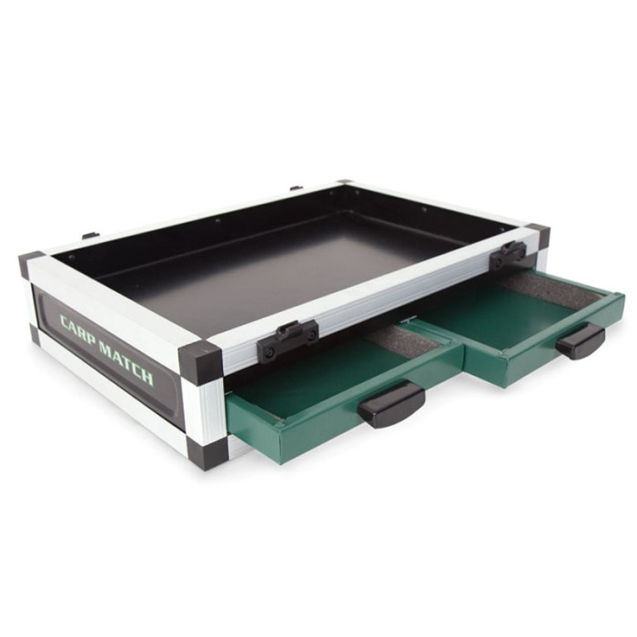 The Leeda carp match aluminium draw unit with 2 front draws, is a strong and durable draw unit designed to fit the Leeda Carp Match seatboxes. Its ideal for storing general accessories or all your rigs. It features two front draws and measures 410mm x 285mm x 85mm.