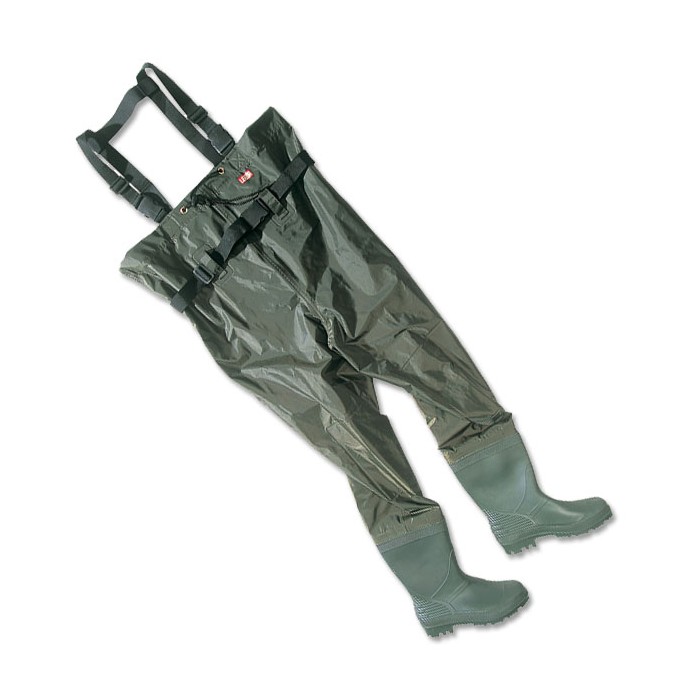 - Leeda Pvc Chest Waders - Fantastic value, sturdy Neoprene lined PVC boot with rugged cleated sole, Lightweight PU coated nylon upper with welded, double stitched seams, Adjustable webbing straps on shoulders and waist, Drawstring closure t o prevent water ingress, Internal chest pocket.