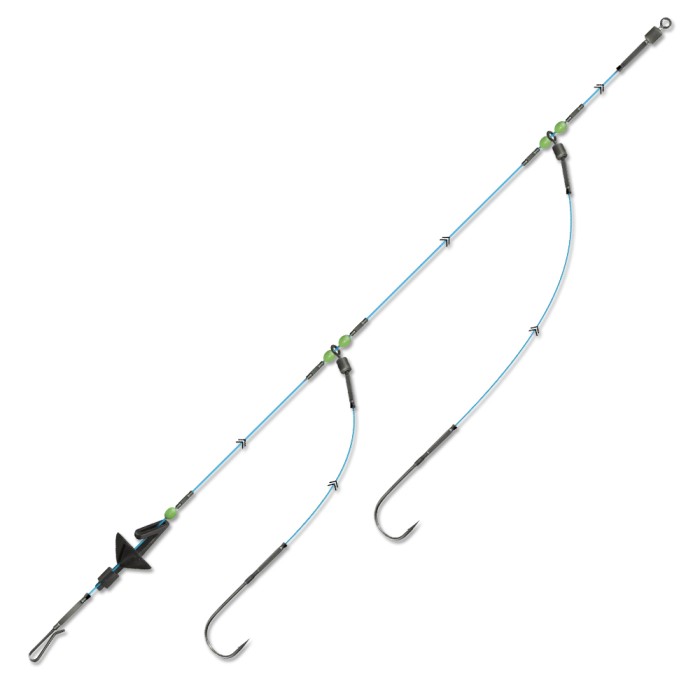 With one long and one short snood, the rig offers two tactics of bait presentation and increases the chance of a catch.