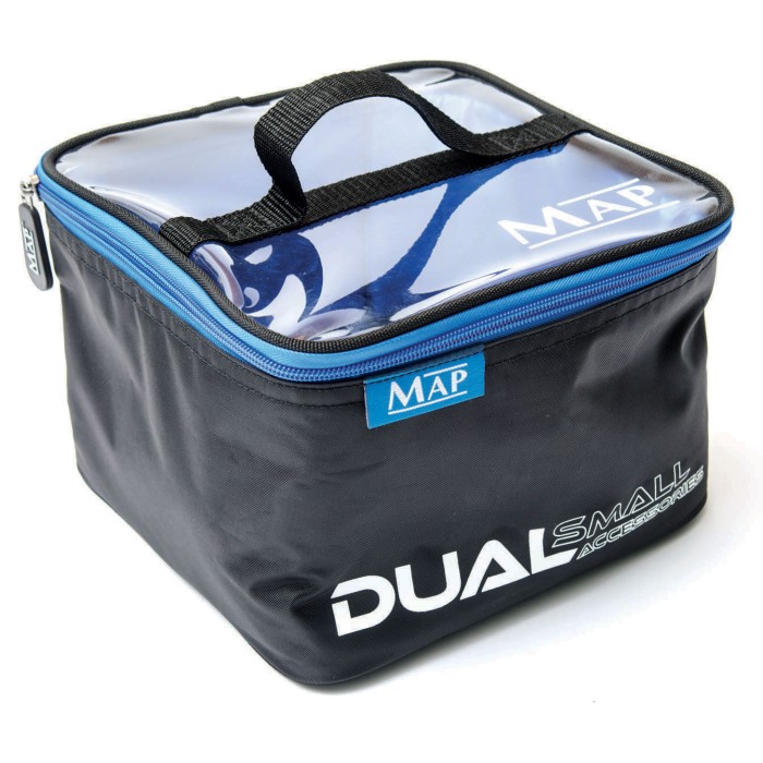 Durable and high quality accessory Bags from MAP with transparent lid, Ideal for organising and storing pole pots, catapults and feeders, MAP dual accessory bags are designed to fit alongside dual tackle and accessory bags.