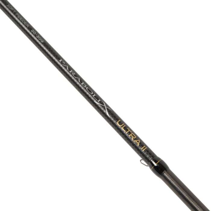 Manufactured using Nano Carbon, the new Parabolix Ultra 11 Feeder rod range offers stronger action throughout its range, enabling you to cast further, and more accurate, without the action being compromised when playing fish. Nano Carbon and resin is an incredibly robust material in strength, and almost twice as strong as conventional resins when cured, yet without any change in weight or in action. These attributes have helped us develop our best range of feeder rods. Power in the lower sections of each rod has been increased to ensure casting is accurate, which we all know is vital when feeder fishing. However, due to the extra flex Nano material offers, the action is still non-locking when playing fish, which all Parabolix rods are renowned for. No matter how hard you pull, the rod will not lock up! Not only have we improved each rods action, but we have also improved the tips that fit them. Each carbon tip supplied with the rods are now softer and more progressive, and much improved over conventional carbon material. Each two-piece blank, is supplied with over-sized, Fuji guides and a Fuji reel seat. The unique rubberized handle ensures grip is never lost, no matter what the weather, and each rod is supplied a set of high-quality neoprene rod wraps, as well as a padded cloth rod bag.