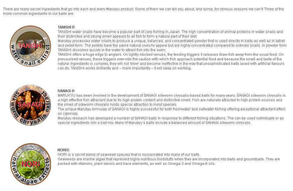 As well as producing some of the best baits in the business, Marukyu also makes some of its special additives available in convenient packs so that you can add them to your own mixes.