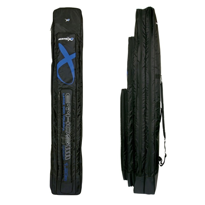 Designed for modern match anglers, the Ethos luggage range delivers innovative solutions for rod, pole, accessory and bait storage and transportation. All items are manufactured from a tough 840D polyester fabric and feature robust zips, stitching and protective reinforcing on key wear areas. Traditional type rod holdall with new broad, flat profile making it ideal for using with a barrow.