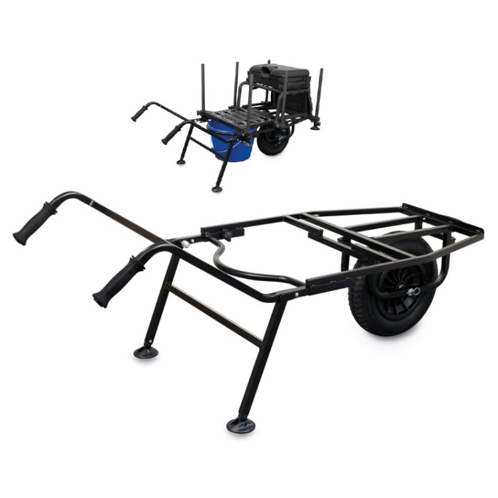 Designed to transport the Superbox 1. Single wheel assembly, drop down handles and pneumatic tyre for easy pushing. Takes Matrix groundbait bucket plus luggage. Breaks down easily for compact storage in car.
