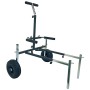 Advanced and improved version of the best selling deluxe matchman's trolley. Features include detachable pneumatic wheels, which are now fully height adjustable, extendable base arms which have been extended even further than its predecessor giving it the capacity to accommodate most if not all seatboxes. The trolley also features an extendable handle with rubber grips, which is fully height adjustable and extendable horizontal padded 'L' bars to lock a seatbox, carryall or net bag securely in place. The welded 'O' rings allow the fixing of elasticated bungee straps (2 supplied as standard), which are easily accessible, even when the trolley is fully loaded. An extremely robust and well thought out trolley.
