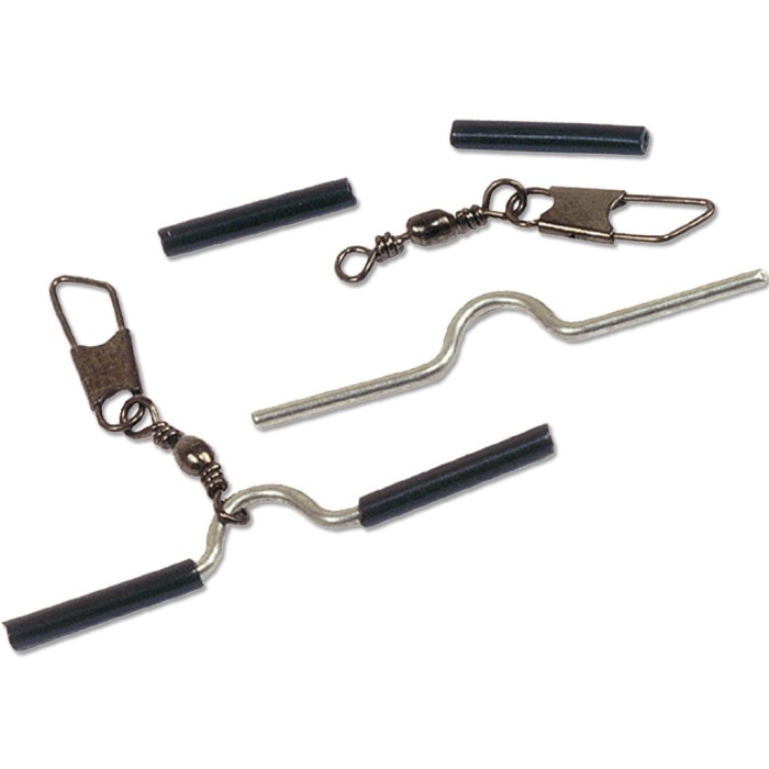 Simply thread main reel line through the two silicone sleeves and insert the peg leg. Fish with or without the swivel provided. Quick change with no damage to line. 4 connectors per packet.