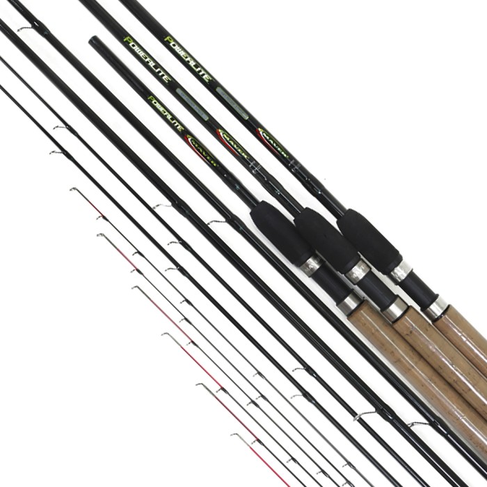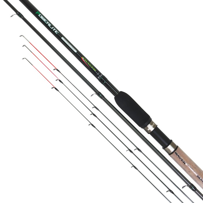 Maver Powerlite FeederTwo piece rods are now commonplace throughout match fishing circuits, as they enable the angler to be ready to go in seconds. This high modulus 12ft feeder rod has been designed specifically for this use.