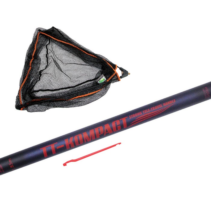 The TT Kompact package includes a folding 20" (50cm) landing net, 1.85m tele handle and a free disgorger. It is only 70cm long when collapsed down making it ideal for travelling and is supplied in a smart presentation pack, with separate easy-reseal compartments for the net and handle.