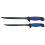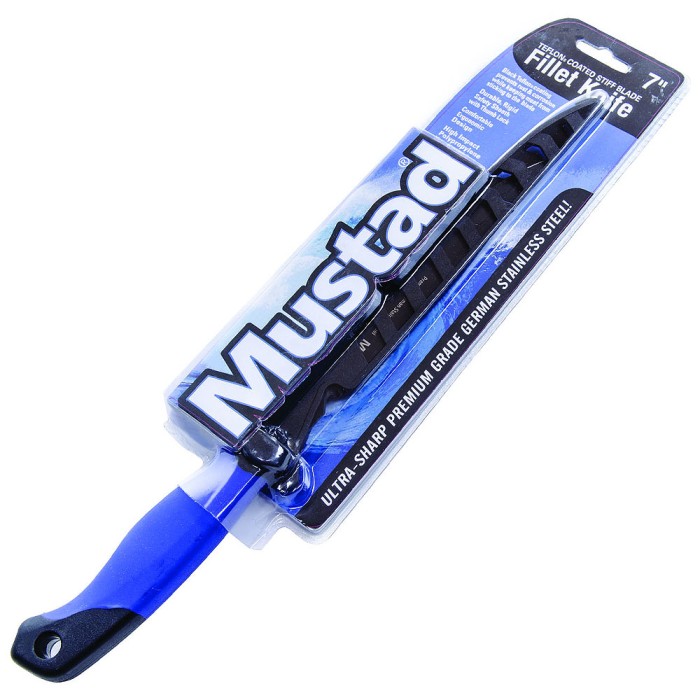 This is a high quality filleting knife as you would expect from Mustad. This one has a 7 inch blade for making neat cuts through tough flesh. The non-slip handle enables you to keep a steady line as you draw the blade down the backbone of a fish. There is also a built in finger guard and it comes complete with an effective knife sharpener.