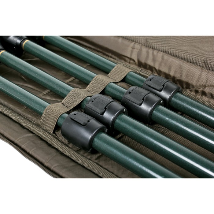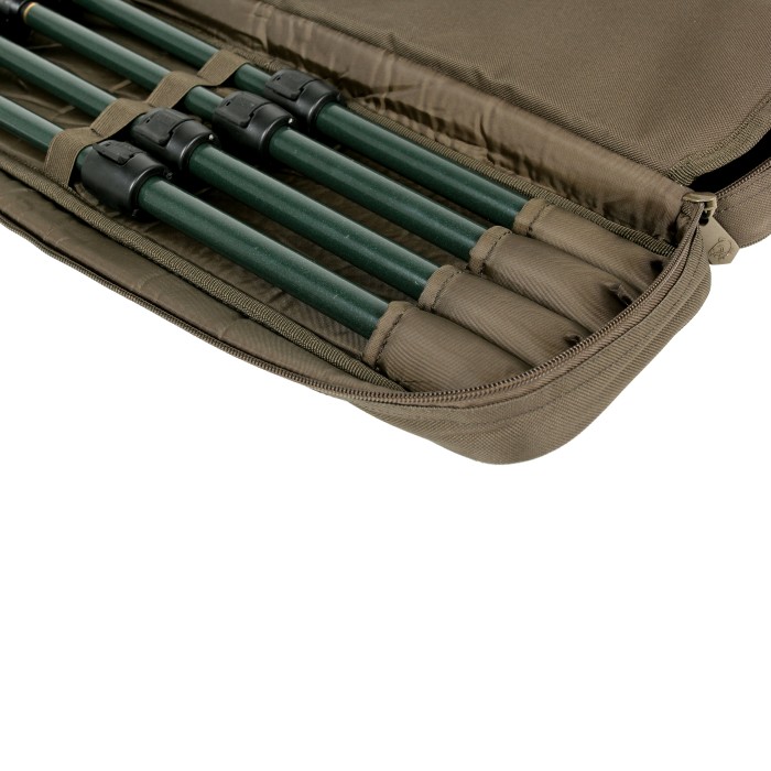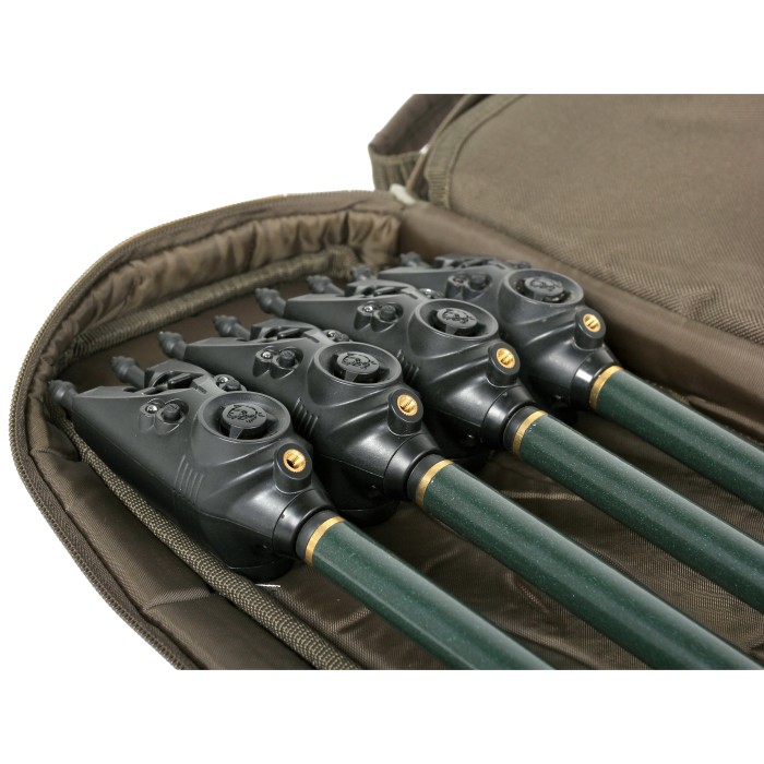 Holds up to 8 banksticks secured with elastic retaining loops and with plenty of space for alarms, indicators and rear rests. Heavy duty zip with three sided access and a padded divider.