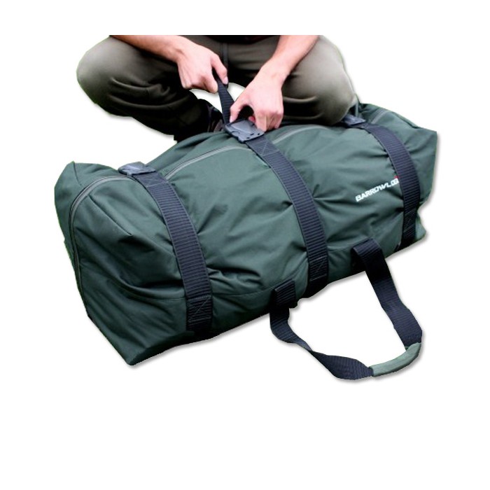 The ultimate range of barrow luggage. Many innovative feature firsts enabling you to increase barrow capacity with secure transportation. This ingenious carryall has an internal compression flap and straps enabling the angler to easily compress his sleeping bag under the flap, preventing the possibility of the sleeping bag catching in the zip. This system also takes all the pressure off the zip, preventing zip burst. Designed to fit correctly across the full width of your barrow.