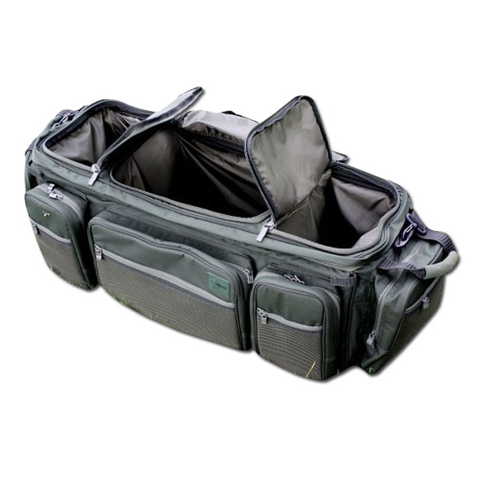 Ingenious main flap, fully zipped to open in one piece with secondary zips to provide access to each of the three compartments. When stored under your bedchair, allows for easy access to either end, or the centre, without having to completely pull out the carryall.