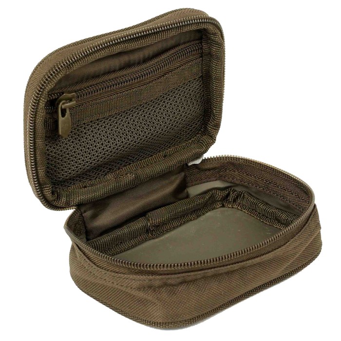 Nash Bits Pouch is a simple yet versatile storage solution for all of your smaller personal belongings. A favourite for storing hook wallets, beads or your mobile phone, with the useful addition of a mesh zipped pocket on the underside of the lid.
