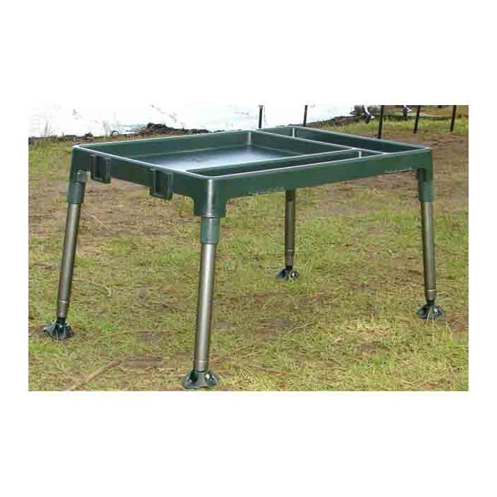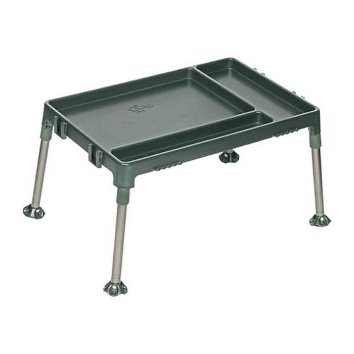 A super stable bivvy table that is also super strong. With a high quality impact moulded top featuring no ribbing to provide a smooth, uninterrupted surface and a deep lip to prevent tackle spill.