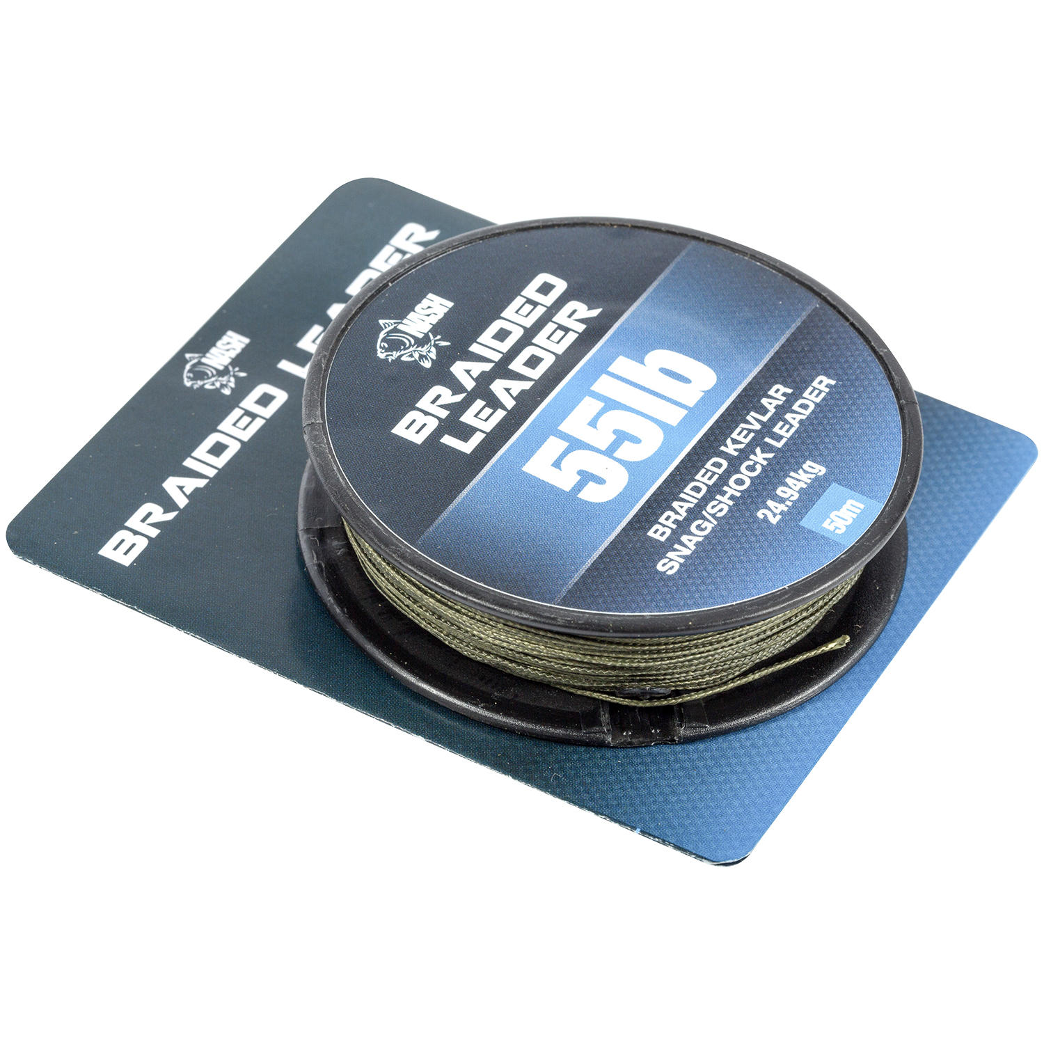 Crafted with eight strands of kevlar, and two of teflon, the Nash Braided Leader provides 55lb breaking strain on a 50m spool, making it a flexible choice, allowing it to be used either as a shock leader, or an extreme hooklink.