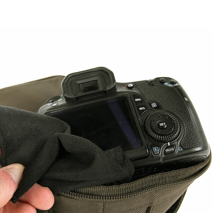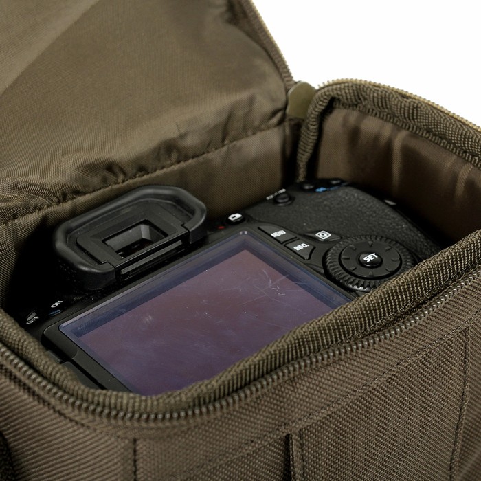Spacious enough to hold a quality digital SLR camera and small flashgun this padded Camera Bag is essential to protect valuable camera and accessories. An external pocket carries additional memory cards, filters or batteries, with a handy internal sewn in lens cloth in the main compartment to ensure you are never left with a dirty lens and no way to clean it when a carp is on the bank.