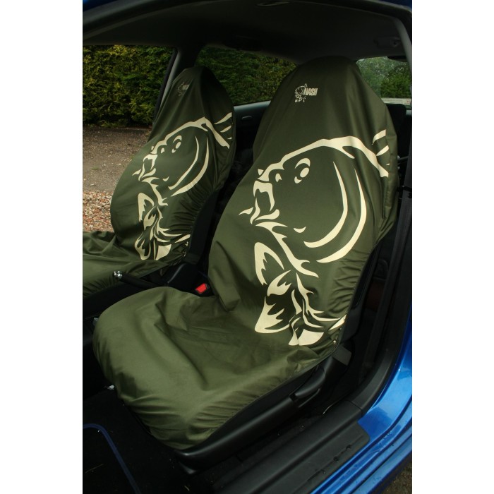 Protect your car seats with this pair of Nash Carpy seat covers. Produced from waterproof, hard wearing Nylon. Universal fit to suit most average sized car seats.