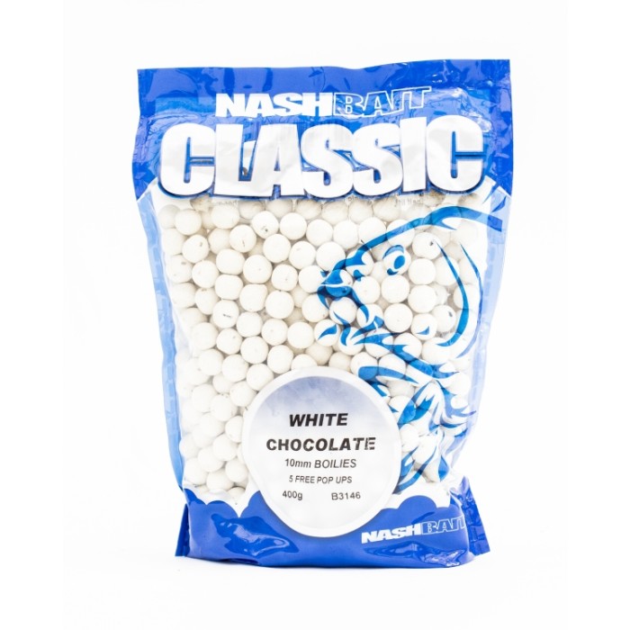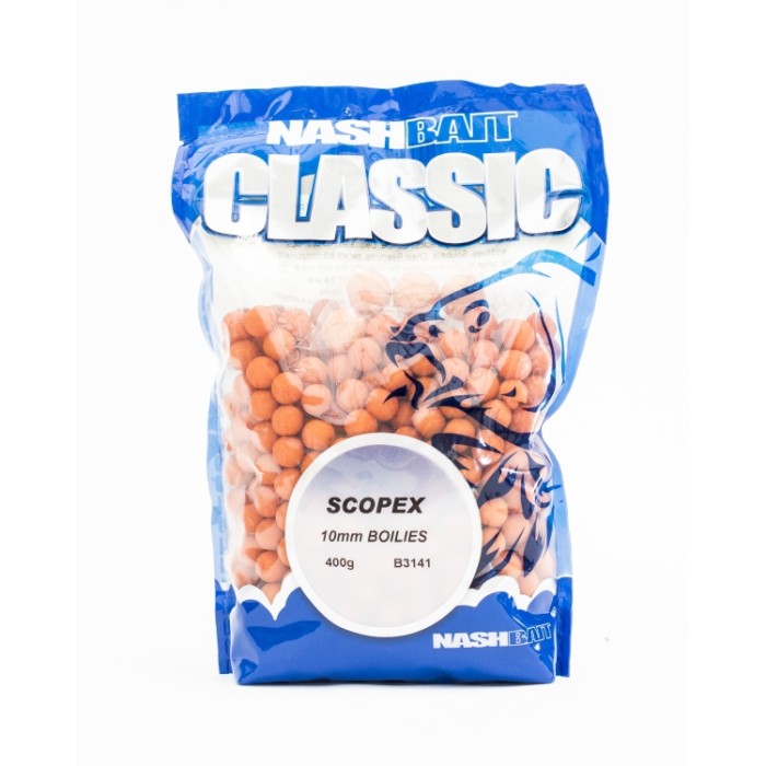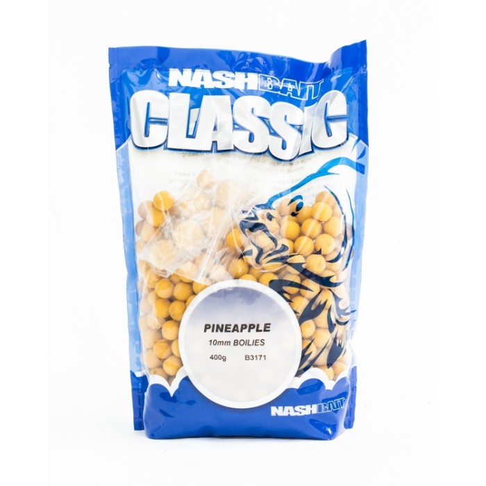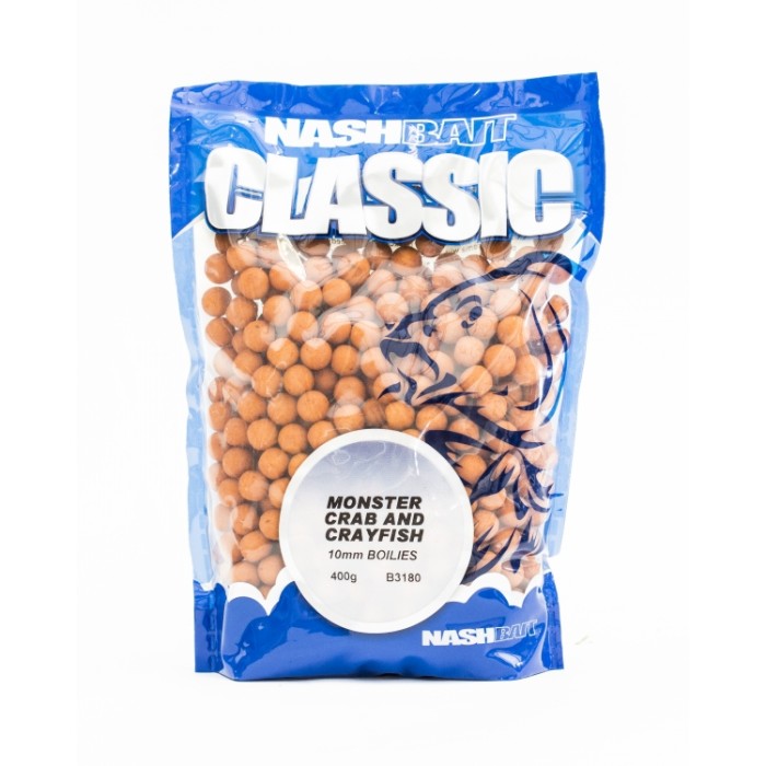 Nash Classic Boilies, Nashbait Classic 50/50 type boilie base mix has been used for more than 25 years (it's a similar mix that Gary Bayes designed when he was at Catchum baits) It is a mix of cooked cereal, medium protein and high digest. At Nashbait we use so much mix we have it blended by a specialist company and have added a vitamin/mineral blend to the base mix as some cereals are missing certain trace elements essential to good health in fish. The ingredients are picked for their digestibility having been processed to be as starch free as possible and high in usable nutrients. Nashbait Classic flavours are the best fishing attractors we can produce; there are no restrictions at all because most are made in our own lab. Strawberry. Base mix; 50/50 type with added bird food for the fat content. Flavours; Strawberry oil palatant, Strawberry flavour, Intense sweetener. Very popular in the UK. Good in the summer and winter. The bailiff on Garys lake has caught in the winter on big fish and easy waters with a lot of pre-baiting but using single hook baits on fishing days.Comments. Scopex. Base mix: 50/50 type Flavours: Scopex and intense sweetener. Comments: In Europe the colour is yellow; in the UK it is Orange. Colour matters to the angler but will make a difference to the fish also. The flavour is strong with this bait but in perfect balance with the base mix and sweeteners, making Nashbait Scopex both instant and long term. White Chocolate Base mix: 50/50 type with added bird food for the fat content. Flavours: White chocolate oil, chocolate malt, chocolate flavour and Intense sweetener. Comments: The 3 different Chocolates are all on different bases so make the recipe very unique to Nashbait and very difficult for the carp to recognize danger. It's similar to blending different flavours but much more subtle and creates a lovely chocolate smell and taste. White baits are excellent in the colder months but the White Chocolate is an excellent all season bait. Tutti Frutti. Base mix: 50/50 type. Flavours:Nashbait Tutti, intense sweetener. Comments: This is Nashbaits top selling boilie, selling more than any other flavour for the last 5 years. We used to use a different Tuti Fruity flavour which unfortunately was discontinued when the company we bought it from was taken over by a larger company. Now we use the Nash Tutti and sales shot sky high, we think because the new flavour is much more subtle, part of the reason why it catches more fish. Pineapple. Base mix: 50/50 type. Flavours: Nashbait Pineapple oil palatant, Protaste and intense sweeteners. Comments: Pineapple oil palatant has always been a very instant flavour and although it is an oil based product it also contains many components that are water soluble (as do all the oil palatants) so there is flavour in all the water layers constantly leaking from each boilie, attracting the fish from the surface to the bottom. Monster Crab and Crayfish Base mix: 50/50 type with 2 added fishmeals. Flavours: Nashbait Monster crab, Crab extract and Shellfish sense appeal and low level intense sweetener. Comments: This bait is a real stinker and is excellent for weedy waters, large waters and anywhere where there is a lot of silt. Monster Crab flavour is a great fish puller and also resists contamination from smelly silt, the Crab extract and Shellfish sense appeal is instantly soluble and also creates instant attraction, even to fish that have never seen boilies before.