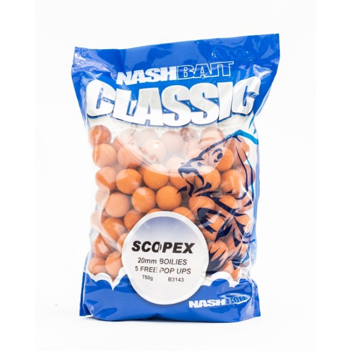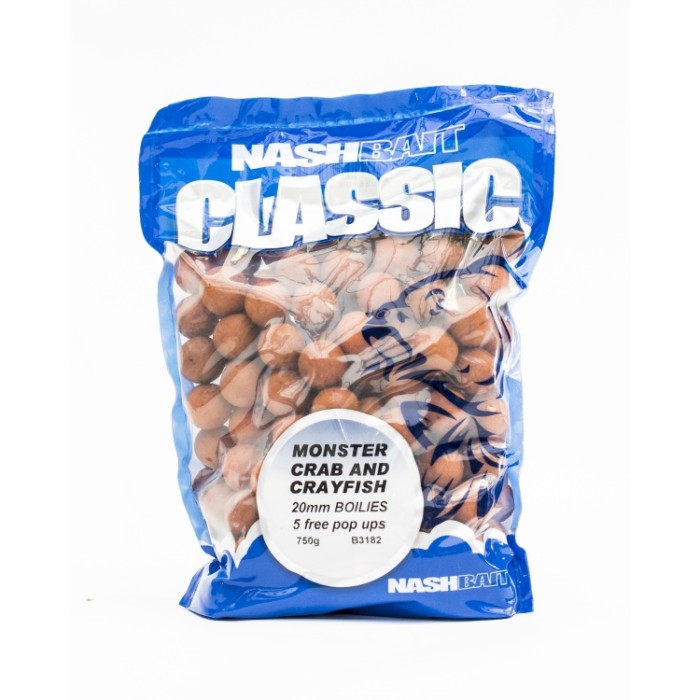 Nash Classic Boilies, Nashbait Classic 50/50 type boilie base mix has been used for more than 25 years (it's a similar mix that Gary Bayes designed when he was at Catchum baits) It is a mix of cooked cereal, medium protein and high digest. At Nashbait we use so much mix we have it blended by a specialist company and have added a vitamin/mineral blend to the base mix as some cereals are missing certain trace elements essential to good health in fish. The ingredients are picked for their digestibility having been processed to be as starch free as possible and high in usable nutrients. Nashbait Classic flavours are the best fishing attractors we can produce; there are no restrictions at all because most are made in our own lab. Strawberry. Base mix; 50/50 type with added bird food for the fat content. Flavours; Strawberry oil palatant, Strawberry flavour, Intense sweetener. Very popular in the UK. Good in the summer and winter. The bailiff on Garys lake has caught in the winter on big fish and easy waters with a lot of pre-baiting but using single hook baits on fishing days.Comments. Scopex. Base mix: 50/50 type Flavours: Scopex and intense sweetener. Comments: In Europe the colour is yellow; in the UK it is Orange. Colour matters to the angler but will make a difference to the fish also. The flavour is strong with this bait but in perfect balance with the base mix and sweeteners, making Nashbait Scopex both instant and long term. White Chocolate Base mix: 50/50 type with added bird food for the fat content. Flavours: White chocolate oil, chocolate malt, chocolate flavour and Intense sweetener. Comments: The 3 different Chocolates are all on different bases so make the recipe very unique to Nashbait and very difficult for the carp to recognize danger. It's similar to blending different flavours but much more subtle and creates a lovely chocolate smell and taste. White baits are excellent in the colder months but the White Chocolate is an excellent all season bait. Tutti Frutti. Base mix: 50/50 type. Flavours:Nashbait Tutti, intense sweetener. Comments: This is Nashbaits top selling boilie, selling more than any other flavour for the last 5 years. We used to use a different Tuti Fruity flavour which unfortunately was discontinued when the company we bought it from was taken over by a larger company. Now we use the Nash Tutti and sales shot sky high, we think because the new flavour is much more subtle, part of the reason why it catches more fish. Pineapple. Base mix: 50/50 type. Flavours: Nashbait Pineapple oil palatant, Protaste and intense sweeteners. Comments: Pineapple oil palatant has always been a very instant flavour and although it is an oil based product it also contains many components that are water soluble (as do all the oil palatants) so there is flavour in all the water layers constantly leaking from each boilie, attracting the fish from the surface to the bottom. Monster Crab and Crayfish Base mix: 50/50 type with 2 added fishmeals. Flavours: Nashbait Monster crab, Crab extract and Shellfish sense appeal and low level intense sweetener. Comments: This bait is a real stinker and is excellent for weedy waters, large waters and anywhere where there is a lot of silt. Monster Crab flavour is a great fish puller and also resists contamination from smelly silt, the Crab extract and Shellfish sense appeal is instantly soluble and also creates instant attraction, even to fish that have never seen boilies before.