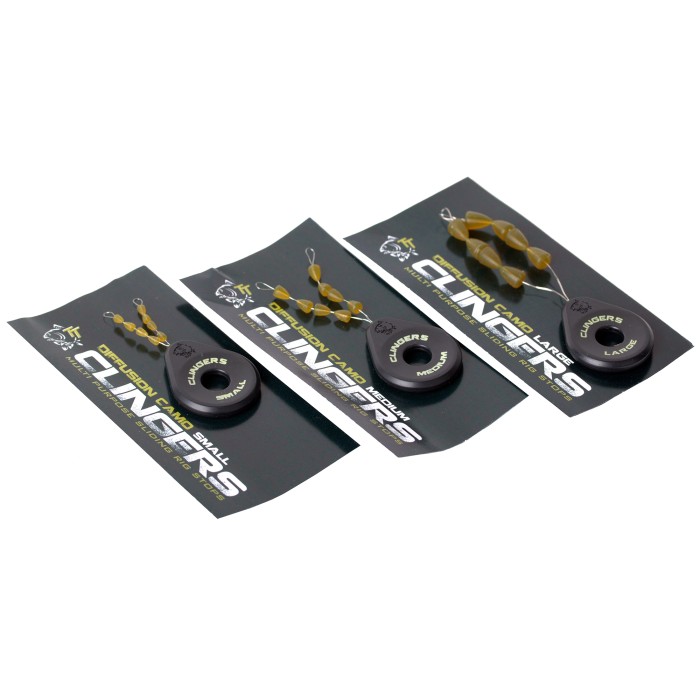 Clingers have almost unlimited uses in modern rigs and end tackles, making them essential in any carp or specialist tackle box. Easily slid on to mono, braid or fluorocarbon main line or hooklengths using the diamond eye wire mounting Clingers can be used to keep double baits together on the hair, trap controllers or floats, or as an anchor point for Cling On Putty. Available in Small, Medium and Large to suit all rig and end tackle applications. Includes 8 stops per packet.