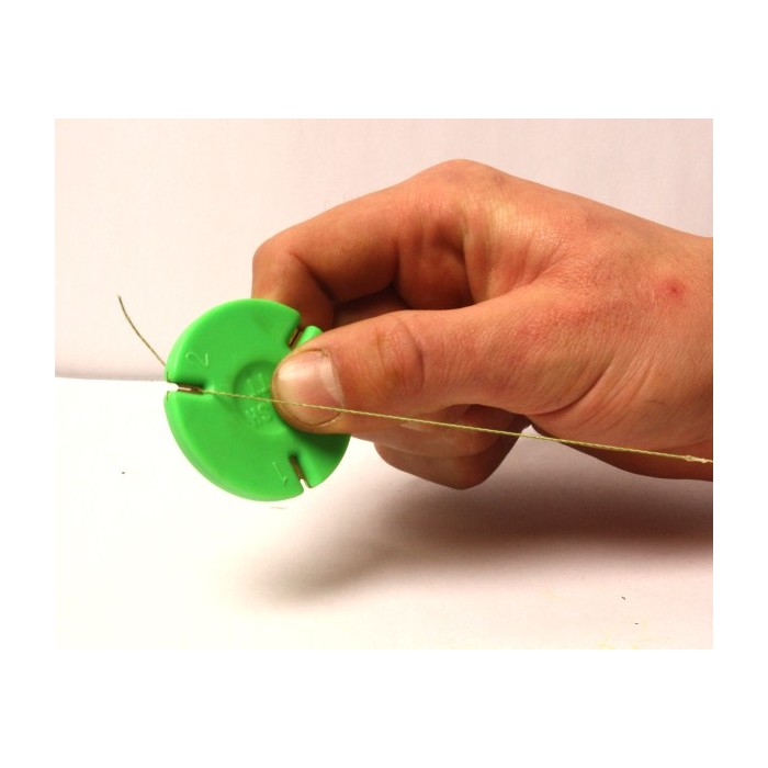 A handy tool to make the task of removing the plastic sheathing on coated braids simple and without the fear of damaging delicate hooklinks. It's round shape makes it ideal to store with your hooklink spools.