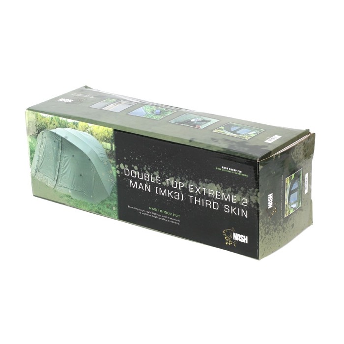 A unique development from Nash offering the ultimate in foul weather protection. The top-selling Double Top bivvies are the only design on the market that can accommodate a third skin, maximising warmth, comfort and protection and with the extended porch providing extra living space.